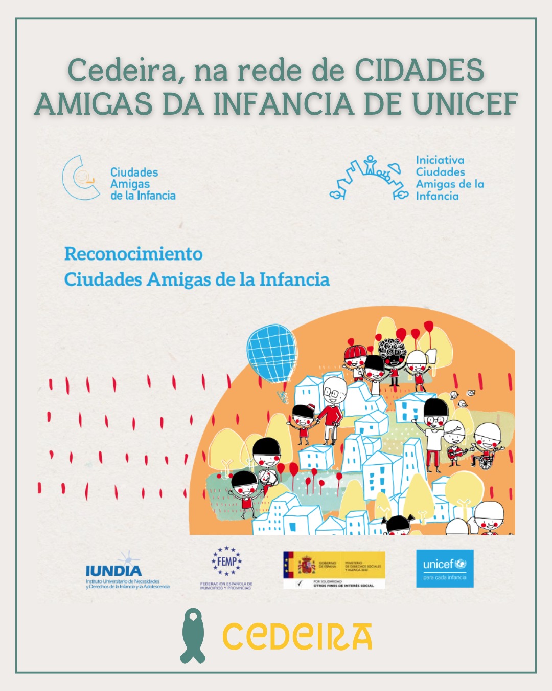 CEDEIRA, UNHA DAS 18 LOCALIDADES DE ESPAÑA QUE ACADA ESTE ANO O TÍTULO “CIDADE AMIGA DA INFANCIA” DE UNICEF