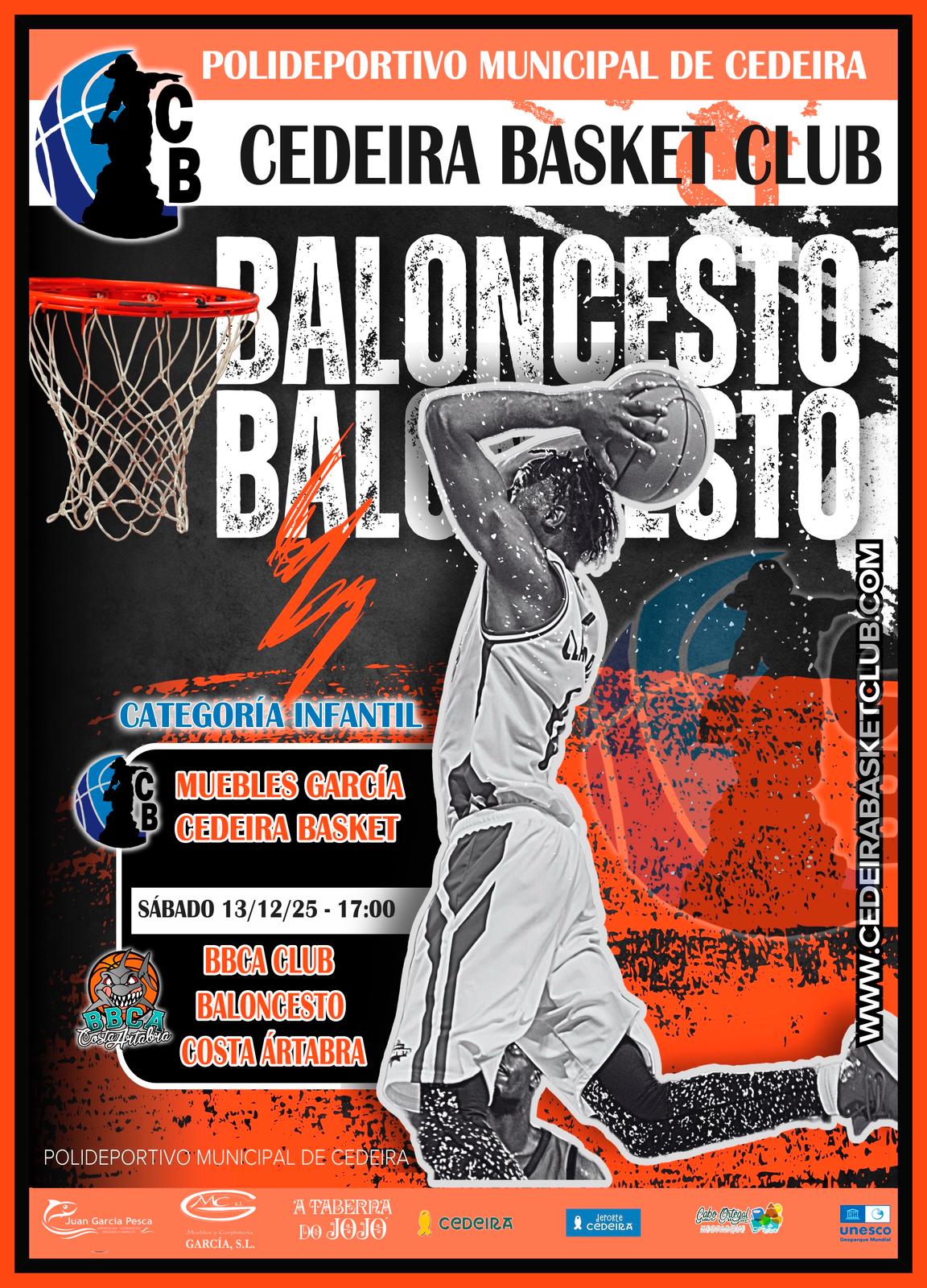 O Cedeira Basket Club, na categoría infantil, disputará un novo encontro da tempada no Polideportivo Municipal de Cedeira. O equipo Muebles García Cedeira Basket enfróntase ao BBCA Club Baloncesto Costa Ártabra.