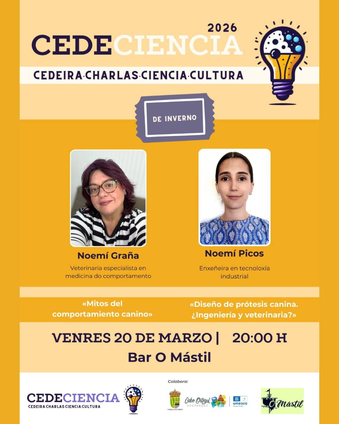 Noemí Picos, ingeniera en tecnología industrial, que hablará sobre «Diseño de prótesis caninas. Ingeniería y medicina veterinaria.».