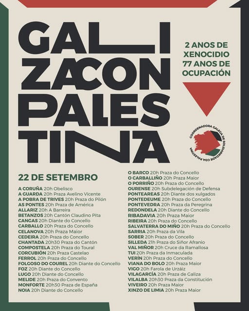 Desde Cedeira queremos sumar nuestra voz a la de millares de gallegas y gallegos que salen a la calle para reclamar el fin de la masacre y el respeto a los derechos humanos del pueblo palestino