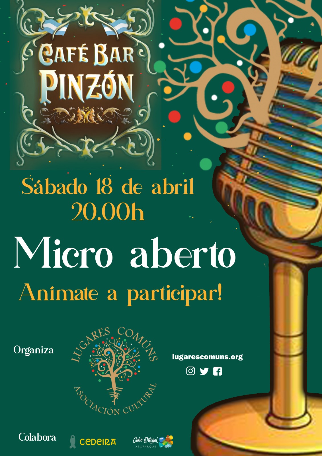 Sábado 18 de abril a las 20.00h en el Café Bar Pinzón.