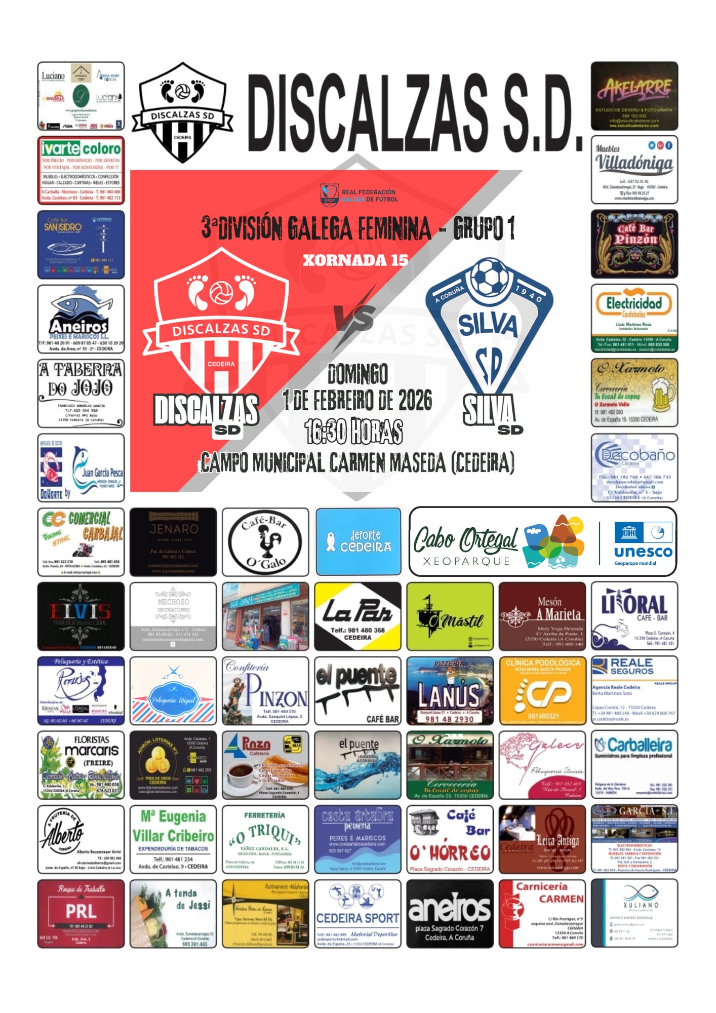 El equipo local, Discalzas S.D., disputará la jornada 15 ante Silva S.D., en un partido que comenzará a las 16:30 horas.