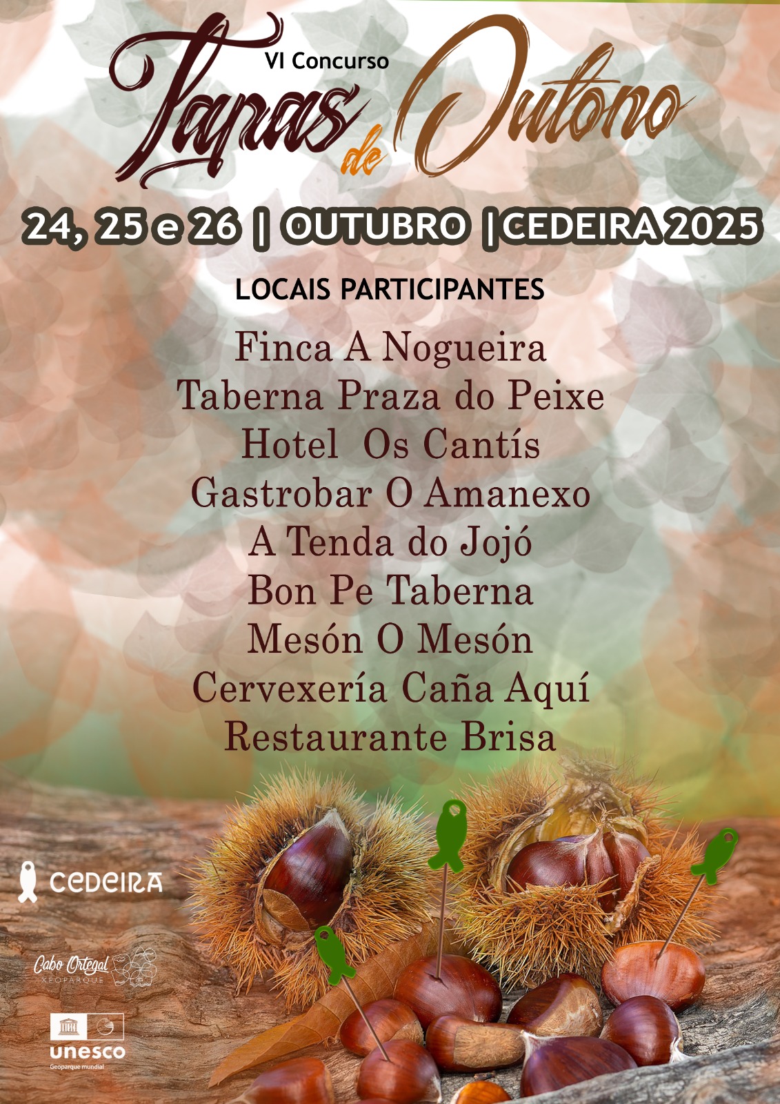 Los establecimientos participantes este año son Hinca Nogueira, Taberna Plaza del Pescado, Hotel Los Acantilados, Gastrobar El Amanexo, La Tenda do Jojó, Bon Pé Taberna, Mesón O Mesón, Cervexería Caña Aquí y el Restaurante Brisa. Servirán sus tapas durante los servicios habituales de cocina, desde el viernes por la noche hasta el domingo a mediodía.