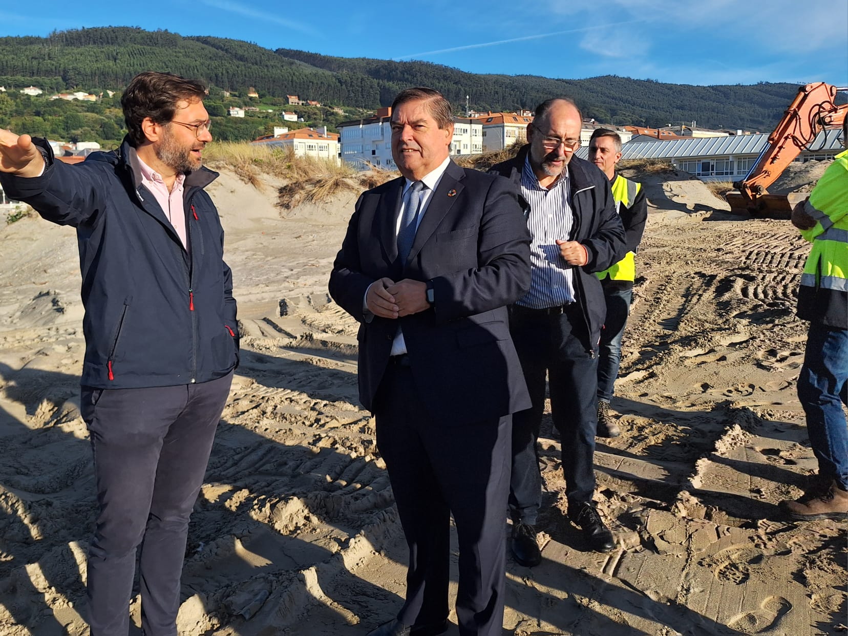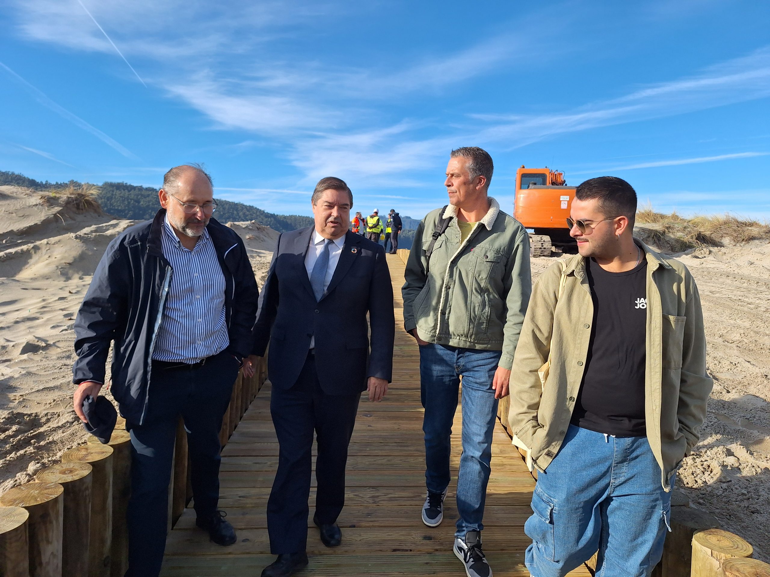 O subdelegado do Goberno na Coruña, Julio Abalde, visitou esta mañá as obras que o Ministerio para a Transición Ecolóxica e o Reto Demográfico está a realizar na praia da Madalena, en Cedeira, xunto co seu alcalde, Pablo Moreda Gil, e o concelleiro Noel López. As obras, iniciadas no pasado mes de abril e que están xa moi avanzadas, contan cun investimento de aproximadamente tres millóns de euros e teñen como obxectivo a rexeneración da praia e do seu espazo dunar asociado. “Este proxecto é unha mostra do compromiso do Goberno de España coa conservación do noso litoral, garantindo que praias como a da Madalena poidan afrontar os retos do cambio climático e seguir sendo un espazo natural e recreativo para todos”, destacou o subdelegado.