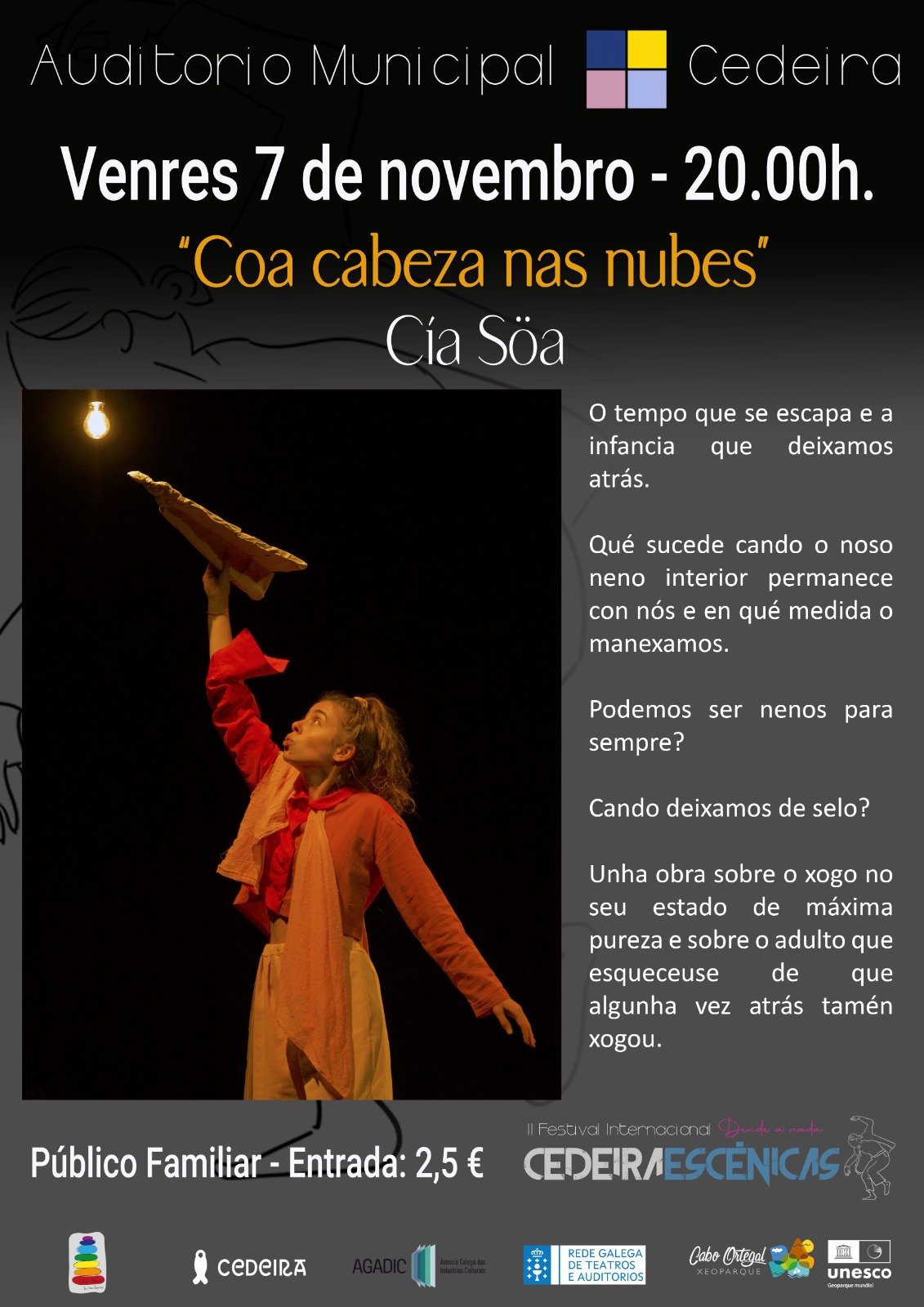 Na axenda cultural e de lecer de Cedeira abrangue tamén o festival “Cedeira canta contra o cancro”, organizado pola xunta local da Asociación Contra o Cancro (AECC). A cita será o sábado, 11 de outubro, ás 20.00h no Auditorio Municipal e na cita actuarán unha serie de artistas e grupos musicais locais (Bea García, Arancha, Amalgama, Elsa López, Poema, Silveiras, Eles e nós, e Masé e Dopazo. As entradas venderanse a 5€ na billeteira desde as 18.30h e os beneficios irán á asociación AECC.