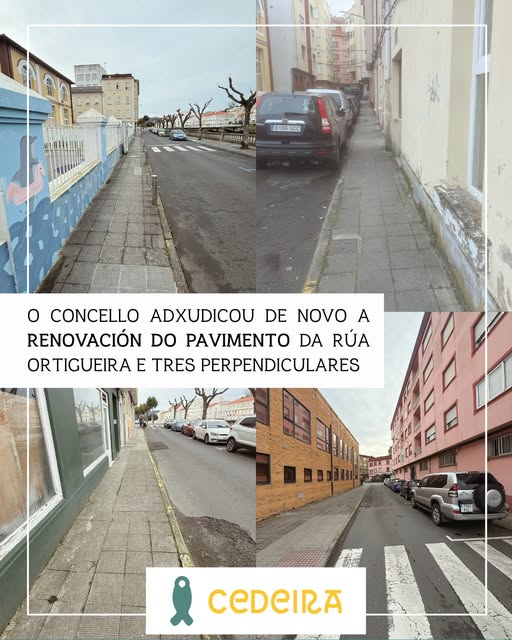 O Concello de Cedeira adxudicou por 128.623€ (IVE incluído) as obras de renovación dos pavimentos das rúas Ortigueira e Ríos Condomiñas, Lamas e Tixón, todas situadas no núcleo urbano e estas tres últimas perpendiculares á primeira, xunto cunha mellora na superficie asfáltica da avenida de España no tramo do Polideportivo Municipal . É unha contía algo inferior á do contrato que xa asinara meses atrás a administración local para realizar esta actuación e que, por problemas da empresa, tivo que ser anulado.