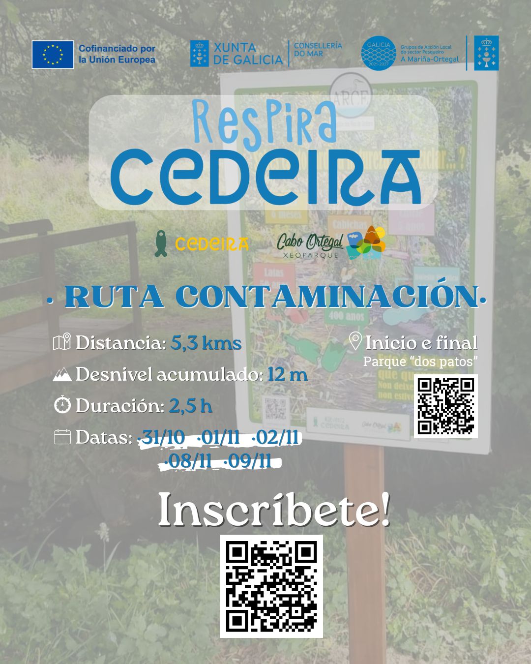 O proxecto “Respira Cedeira” ten como obxectivo promocionar o patrimonio de Cedeira dende distintos ámbitos, creando produtos turísticos sostibles que axuden a desestacionalizar a actividade turística, crear relacións positivas co entorno e repercutir positivamente no desenvolvemento local. Foi impulsado polo Concello de Cedeira para financiación do Fondo Europeo Marítimo, de Pesca e de Acuicultura, a través das axudas outorgadas polo GALP A Mariña – Ortegal na convocatoria 2023.